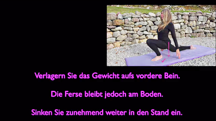 Die Yogalehrerin Anja Werner erläutert in dem Clip auf anschauliche Weise die zentrierte Beindynamik im Halbmondstand.