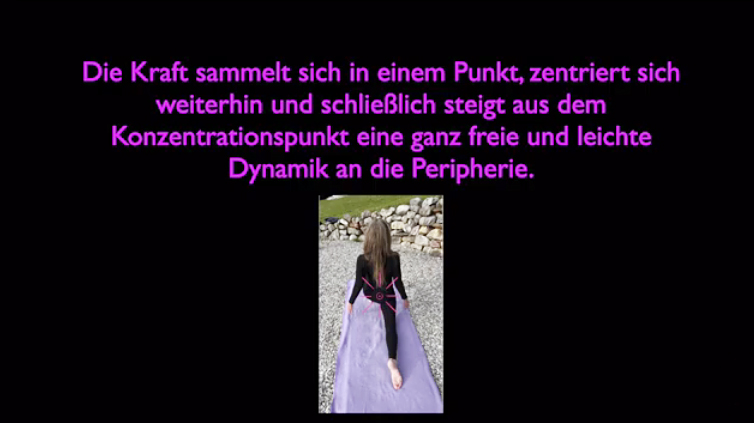 Im Halbmondstand ist eine wertvolle Erlebensform die Zentrierung der physischen Kraft im 1. Chakra. Man kann an den Erdmittelpunkt denken. Die Kraft sammelt sich an einem Punkt, in der Kreuzbeinzone und damit in der Körpermitte, zentriert sich und steigt aus dieser Konzentration ganz frei und leicht als Dynamik in die Peripherie.